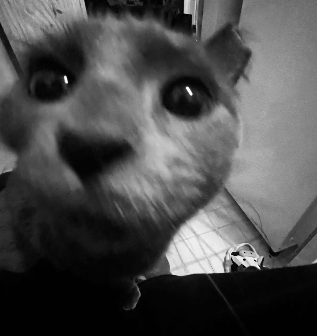 She is screaming in her little box on our way to the vet. Fuck the vet. Fuck the box. I take her home and she immediately takes a nap on one of her five designated beds. Later she will get on the windowsill and watch the snow. I tell her good job for pooping. I tell her that she is so fast and brave.